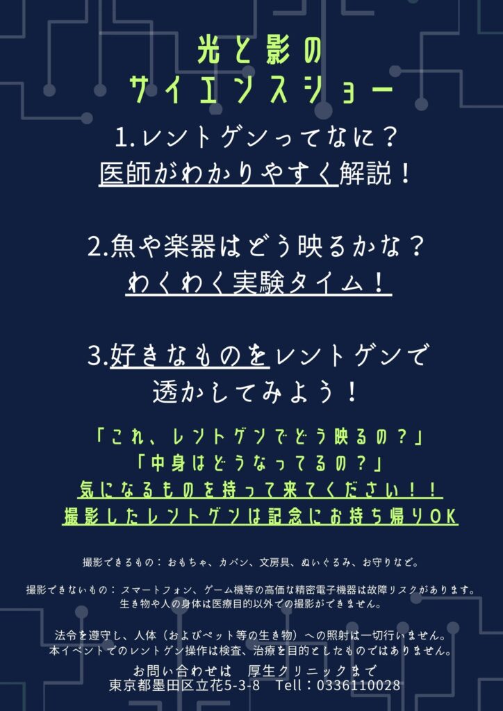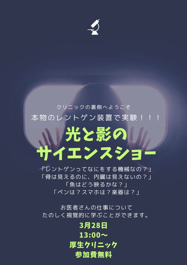3月のイベント「光と影のサイエンスショー!」 レントゲンのヒミツ、教えます( ̄▽ ̄)